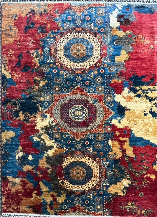4.5′ × 6.1′ Mamluk Rug – Hand-Knotted Wool | Afghan Artisan Craftsmanship | Luxury Oriental Area Rug