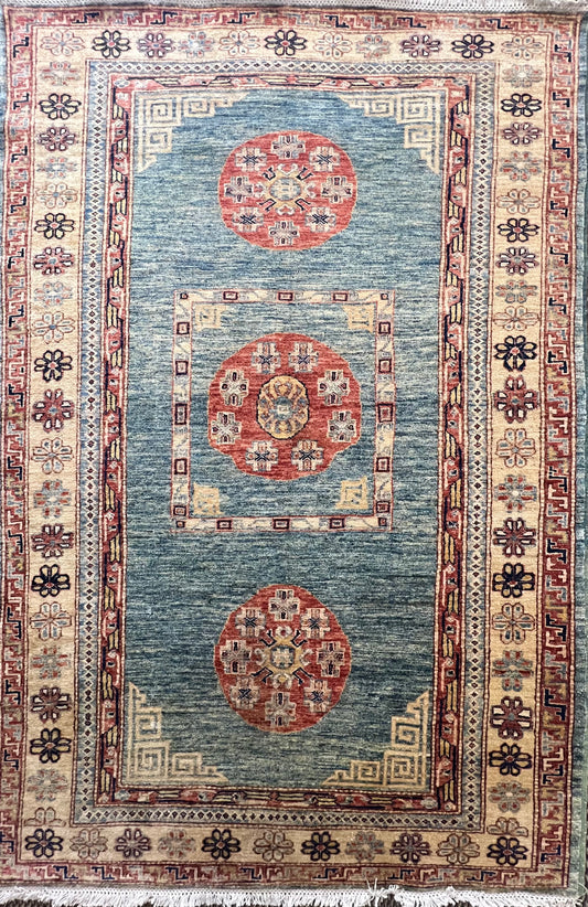 Khoja Roshanuma 3'3'' X 5'3 is a one-of-one hand-knotted afghan rug crafted in the Afghan...