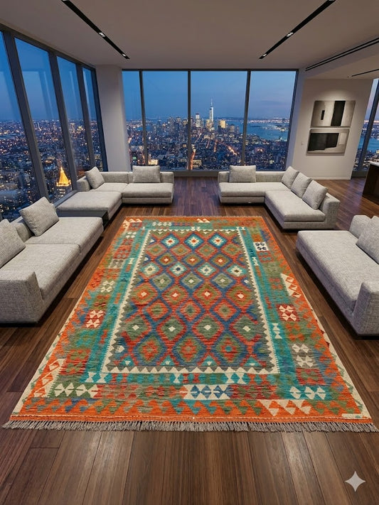 Kilim Tribal 6’1’’ X 9’6’’ is a one-of-one handwoven flatweave kilim rug crafted in the...