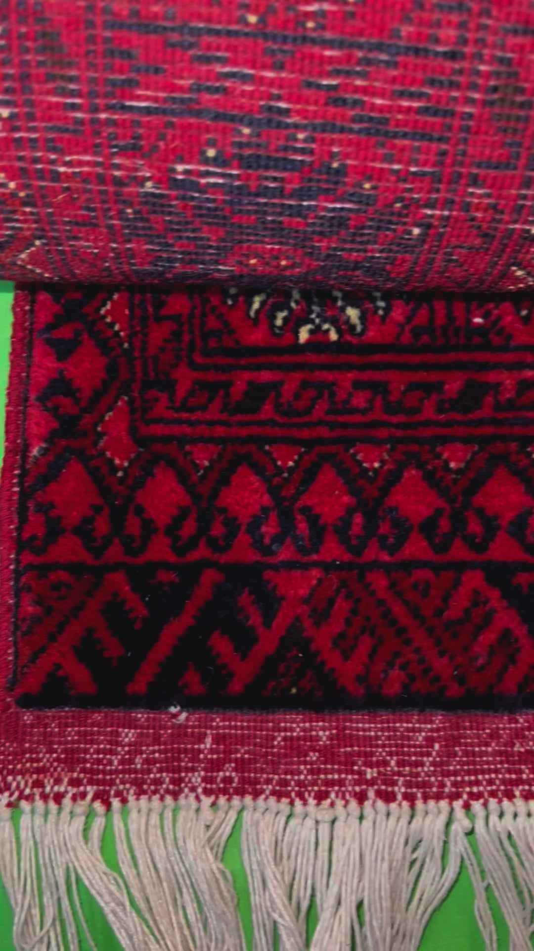 Crafted from hand-spun Ghazni wool colored with natural vegetable dyes, the rug features a rich palette of traditional tribal colors—deep crimson, charcoal, ivory, and rust—arranged in rhythmic geometric bands. Ghazni wool—celebrated for its superior softness, resilience, and natural lanolin content—creates dense pile construction with exceptional tactile depth. The fine knotting ensures crisp motif definition, while the wool's inherent luster enhances the intricate pattern work.