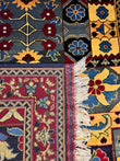 Crafted from hand-spun Ghazni wool colored with natural vegetable dyes, the rug features a sophisticated palette of traditional colors—ruby, sapphire, ivory, and terracotta—arranged in rhythmic floral bands. Ghazni wool—celebrated for its superior softness, fiber length, and ability to hold vibrant dyes—creates dense pile construction with exceptional tactile depth. The fine knotting ensures crisp motif definition essential to Kashmiri-inspired aesthetics, while the wool's natural luster enhances the intricate pattern work.