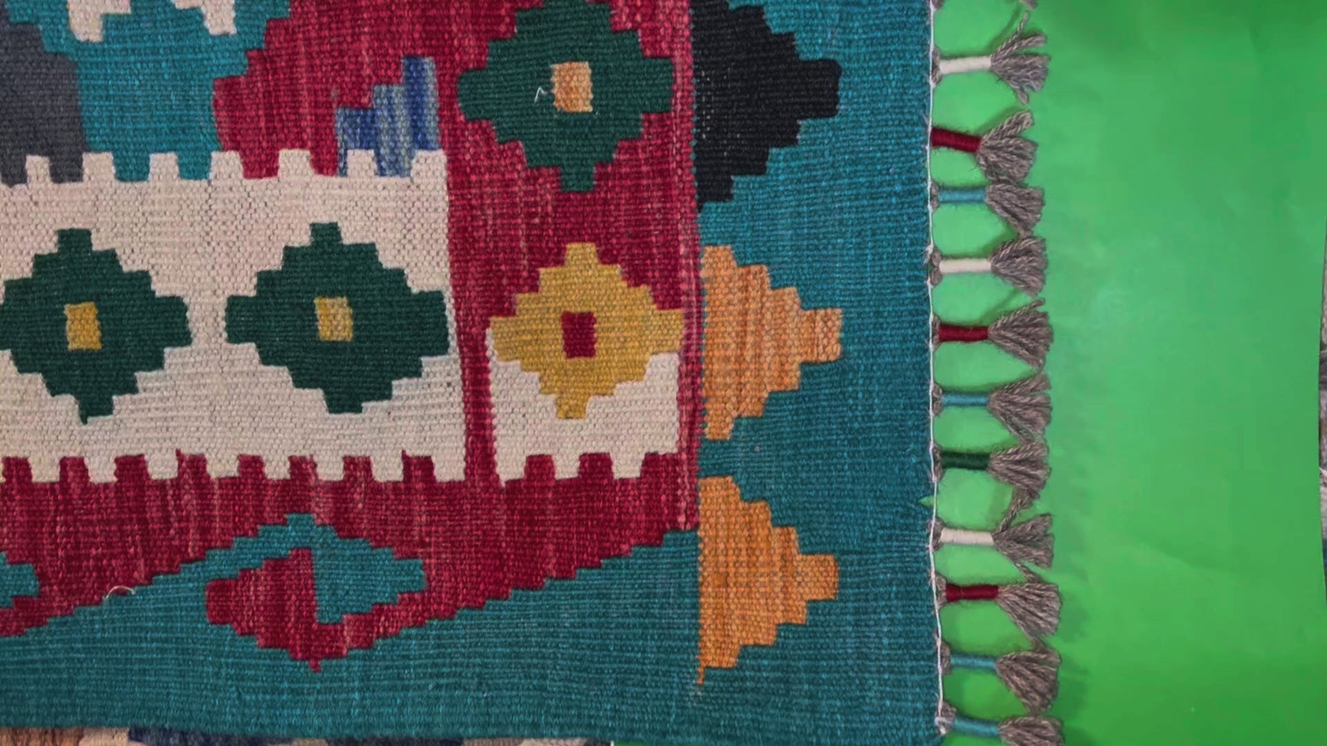 This piece is handwoven flatweave, a time-intensive method prized for its structure, detail, and heirloom durability. The composition and cadence of the design reflect workshop-level control rather than mass production.